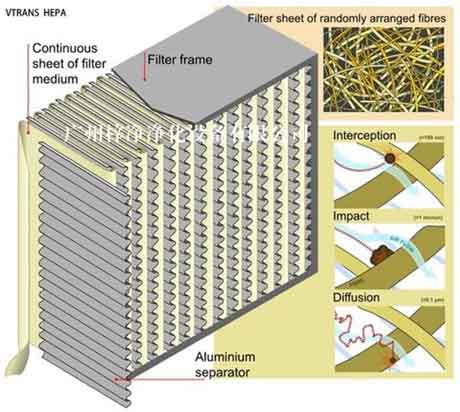 高效過濾器結構采用超細玻璃纖維紙作濾料,膠板紙、鋁膜等材料作分隔板,與鋁框、鍍鋅鐵框等膠 合而成。具有過濾效率高,阻力低,容塵量大等特點。