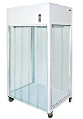 鋼板烤漆采樣車采用垂直層流的氣流形式。變速離心風(fēng)機將負(fù)壓箱內(nèi)經(jīng)過預(yù)過濾器過濾后的空氣壓入靜壓箱,再經(jīng)高效過濾器進行二次過濾,從高效過濾器出風(fēng)面吹出的潔凈氣流,以一定的均勻的斷面風(fēng)速通過工作區(qū)時,將塵埃顆粒和生物顆粒帶走,從而形成無塵無菌的工作環(huán)境。