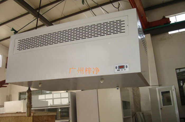 百級(jí)層流罩有風(fēng)機(jī)內(nèi)裝式,安裝方式有懸掛式和落地支架式兩種。層流罩是將空氣經(jīng)風(fēng)機(jī)以一定的風(fēng)壓通過高效空氣過濾器后,經(jīng)過均流膜后,是潔凈空氣呈垂直層流型氣流送入工作區(qū),從而保證了工作區(qū)達(dá)到工藝所需的高潔凈度。